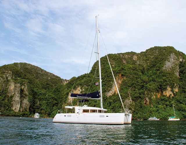 Na Phuketu naleznete pět přístavů a několik specializovaných jachtařských obchodů. Zde také začala naše pětidenní plavba, konkrétně v plně vybavené marině Yacht Haven, která se nachází na severovýchodním pobřeží ostrova, pouhých 15 minut od letiště. Byl pro nás připravený katamaran Lagoon 450 Lux se čtyřmi dvoulůžkovými kajutami s vlastními koupelnami a prostorným salonem s vybavenou kuchyní. Nechyběly samozřejmě ani podrobné mapy a kapitánský pilot spolu s nezbytným plotrem. Komfort doplňovala klimatizace, generátor a odsolovač mořské vody.